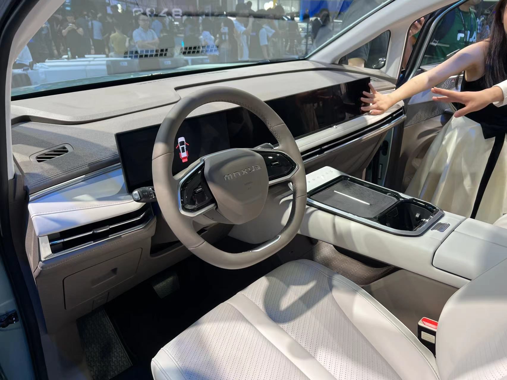 進入車內(nèi),最引人矚目的便是由三塊12.3英寸屏組成的聯(lián)屏系統(tǒng),并內(nèi)置高通驍龍8155芯片斑馬智行系統(tǒng)。主副駕車門上還配備了電子后視鏡(選裝件)的車內(nèi)顯示屏,座艙的科技感濃重。整個內(nèi)飾風格素雅簡約,中控臺和中央通道區(qū)域使用了大面積皮質(zhì)包覆,質(zhì)感豪華。