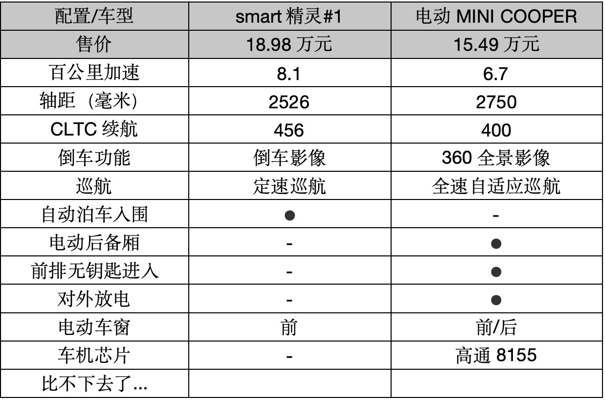 即使如此,銷量依然不盡人意,相關(guān)數(shù)據(jù)顯示,其今年1-5月份上險(xiǎn)量9099輛,同比下滑53.6%,況且smart精靈#1的配置還比電動(dòng)MINI COOPER優(yōu)秀那么多!