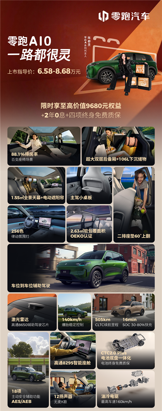 早上 7 點(diǎn)半的北三環(huán)高架又堵成了停車場,隔壁網(wǎng)約車司機(jī)啃著包子掃了一眼我開的試駕車,探出頭喊:"兄弟這新出的零跑 A10 吧?我正打算把我那臺(tái)老油車換了,聽說不到 9 萬就能帶激光雷達(dá)?" 我笑著揮了揮手 —— 是啊,現(xiàn)在的新能源市場卷到什么程度?6 萬起步,最高不到9萬的小車,能把以前 20 萬級(jí)才有的配置給你塞得滿滿當(dāng)當(dāng),零跑 A10 這臺(tái)剛上市的小型純電 SUV,顯然就是來掀桌子的。