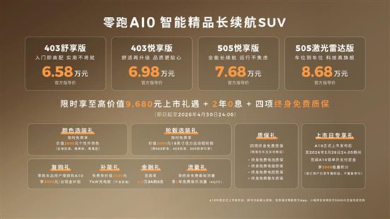 以前總有人說 "代步車不需要配置,能開就行",但零跑 A10 告訴我們:代步車也能不將就。6 萬多的價(jià)格,能給你大空間、長續(xù)航、流暢的車機(jī)、甚至9萬不到還有激光雷達(dá)智駕,對(duì)于預(yù)算 10 萬以內(nèi)想買純電 SUV 的用戶來說,這臺(tái)車真的是繞不開的選項(xiàng)。