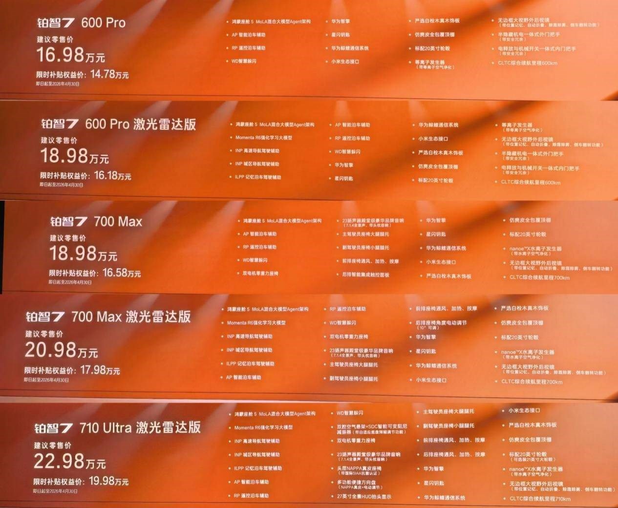 4、700 Max 激光雷達(dá)版(補(bǔ)貼后17.98萬)→ 全車最值得買,沒有之一