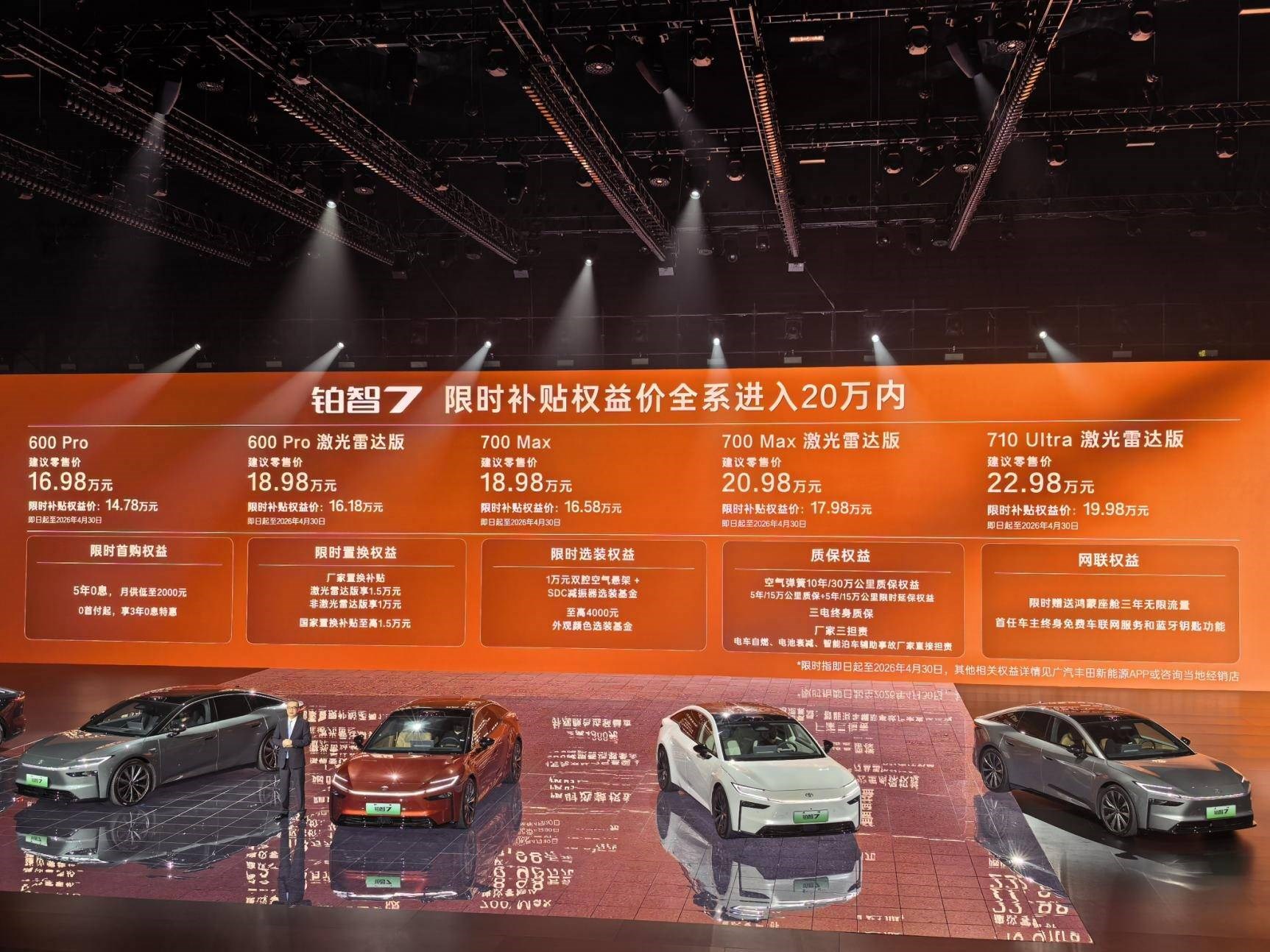 新車一口氣推出5款配置,官方指導(dǎo)價(jià)16.98-22.98萬元,但截止到4月30日前會(huì)有限時(shí)補(bǔ)貼,入門價(jià)狂砍到14.78萬,頂配也才19.98萬,直接打到20萬內(nèi)?;˙級(jí)車的錢,享D級(jí)車的配置,豐田品質(zhì)+國產(chǎn)智能雙buff拉滿,再也不用在“合資靠譜”和“新勢力智能”之間做選擇題。