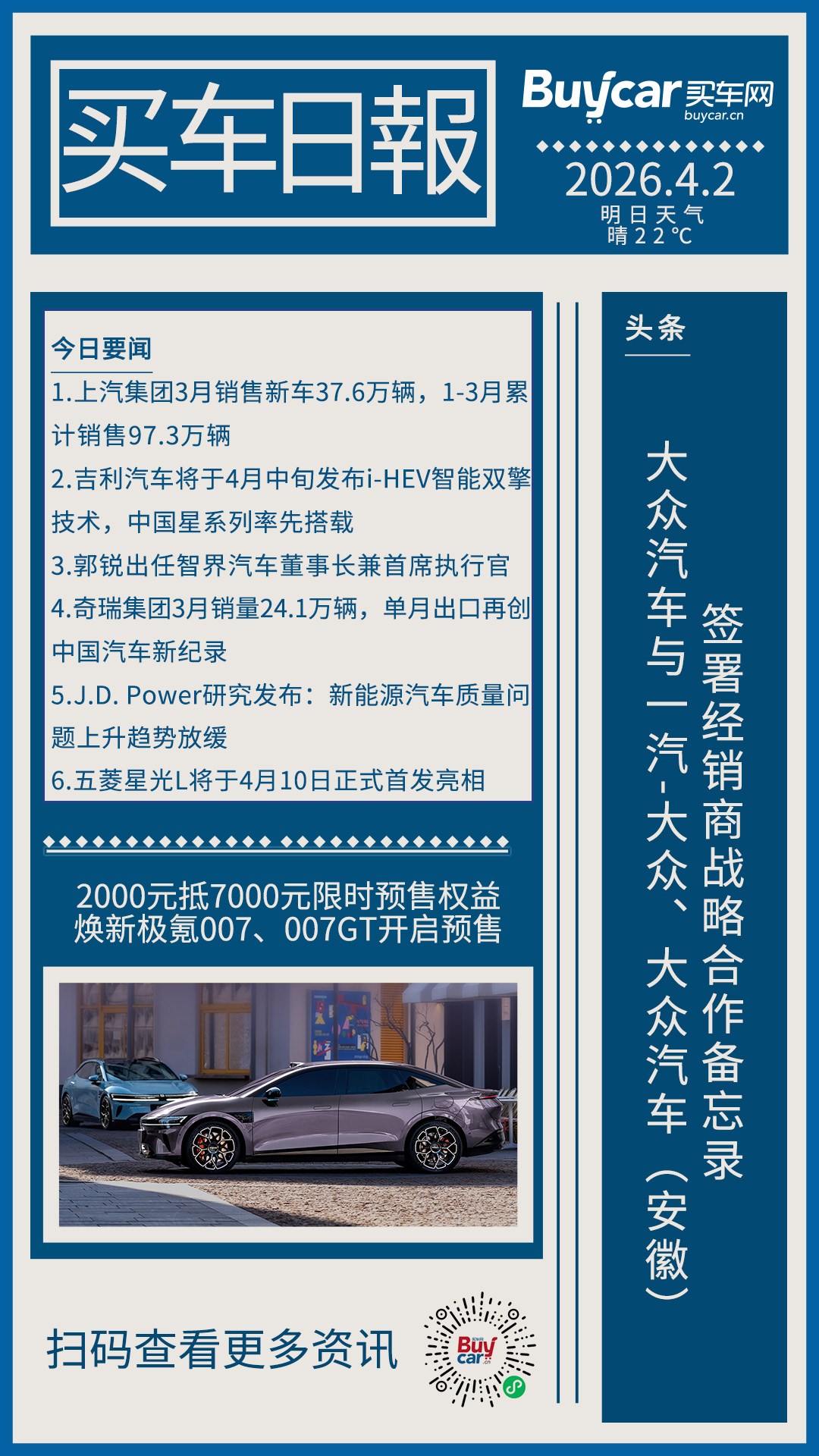 買車日報-20260402-大眾汽車與一汽-大眾、大眾汽車(安徽)簽署經(jīng)銷商戰(zhàn)略合作備忘錄